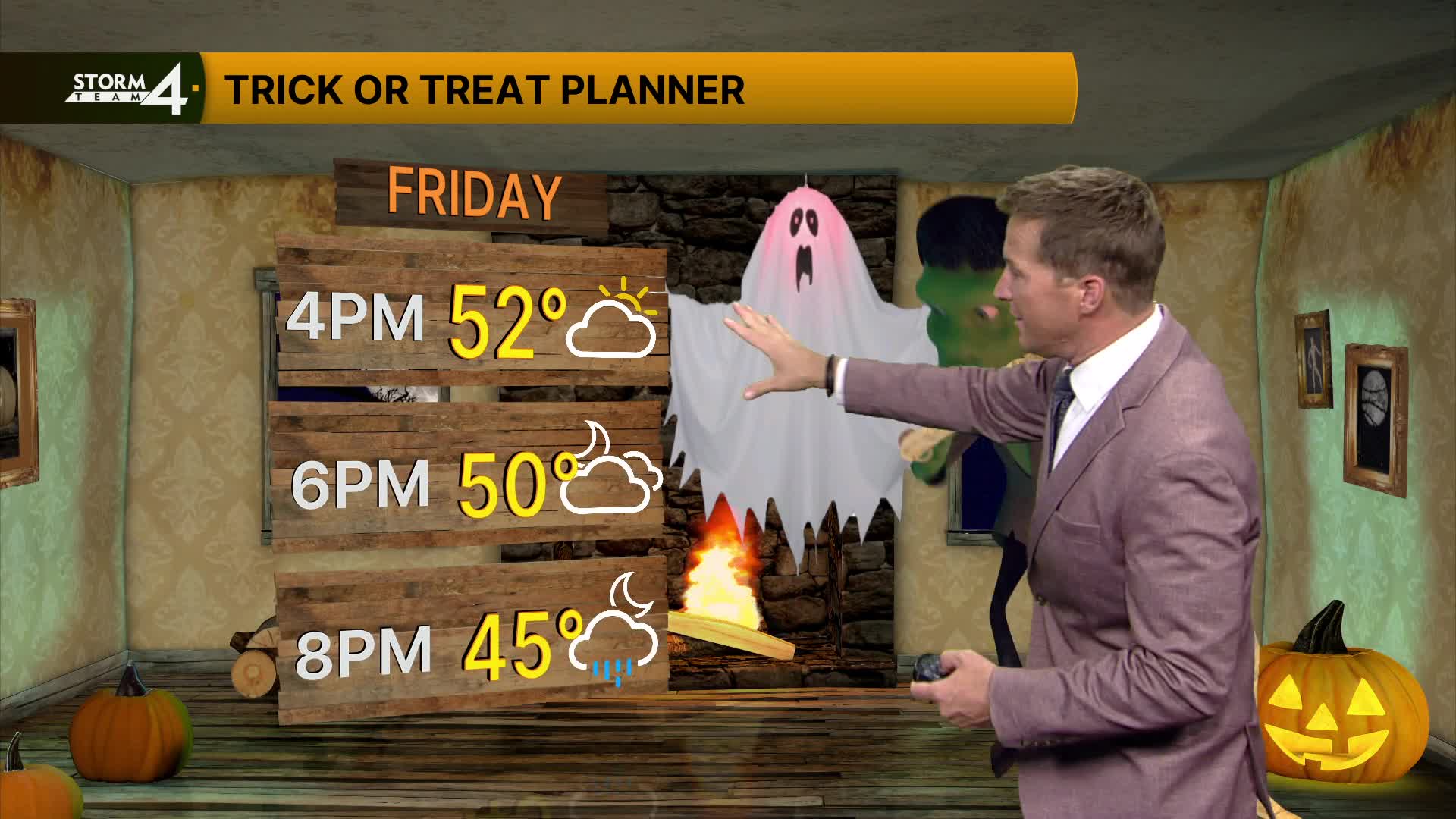 The chance of a passing shower during tomorrow evening's trick-or-treating has increased, but any shower should be brief.