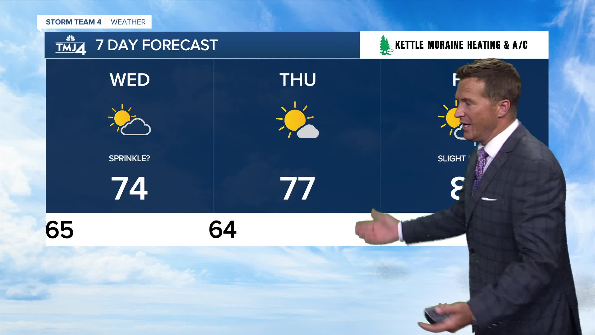 WEDNESDAY: Partly Cloudy and Breezy. Isolated Sprinkle