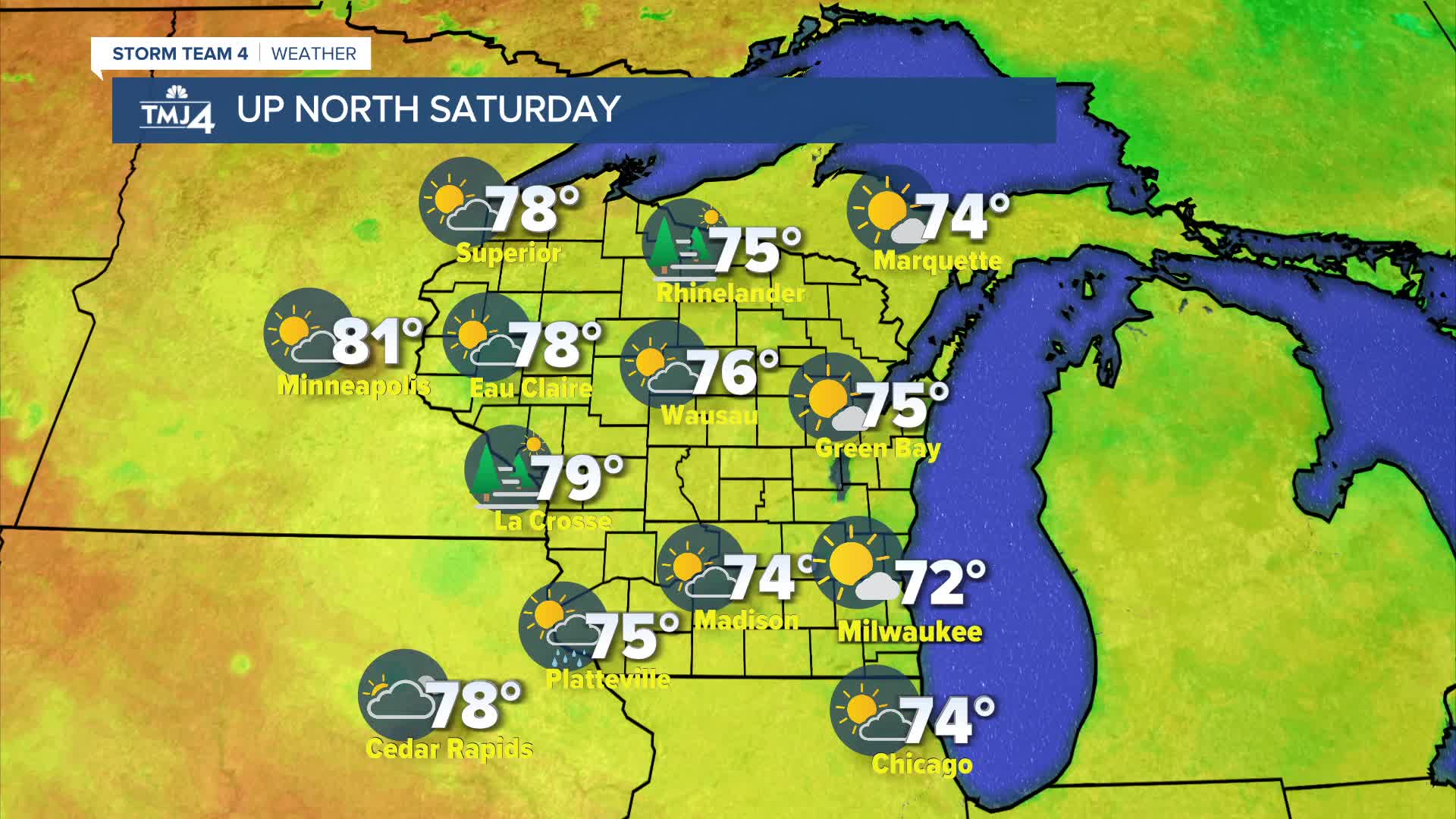 Another cold front is passing through after dropping down from Canada. This will bring another shot of fall weather to the upper Midwest. Lows tonight fall into the lower 50s in Milwaukee, while other locations may drop into the 40s.