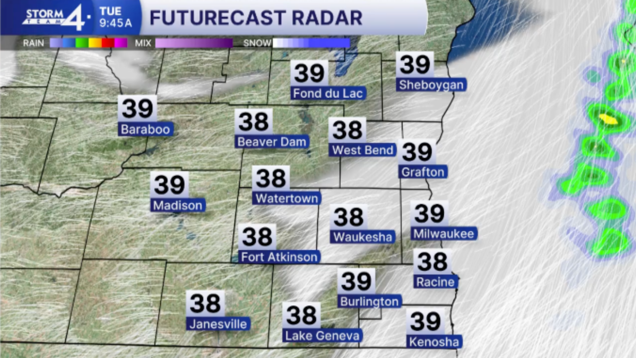 Southern Wisconsin looks forward to some mild air today before a quick cool-down on Wednesday. A compact low-pressure system is clipping our region to the north. A few light sprinkles are darting across Wisconsin this morning, but most areas will stay dry.