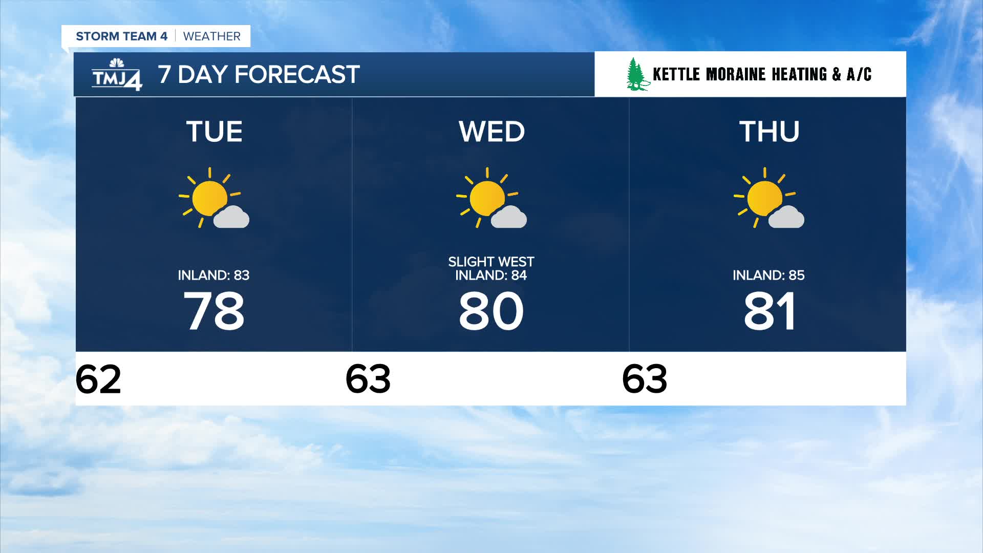 Again, it's more of the same Tuesday through Thursday with highs in the upper 70s to close to 80 lakeside and mid 80s inland.