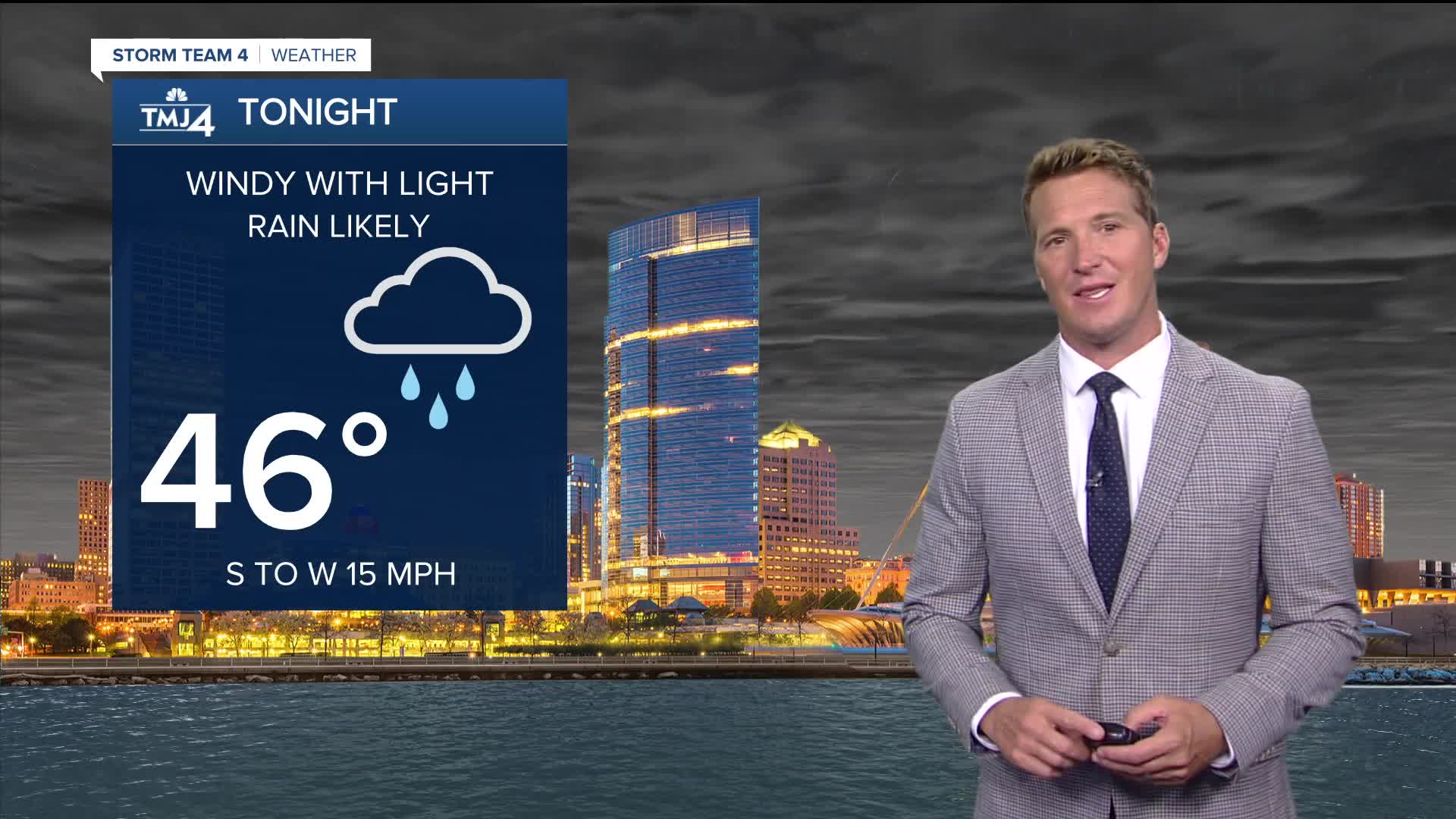 It won't get as chilly tonight with, eventually, more clouds in the sky. Light rain will also spread across southeast Wisconsin after 9 p.m. this evening. Only up to 0.10" of rain is expected overnight.