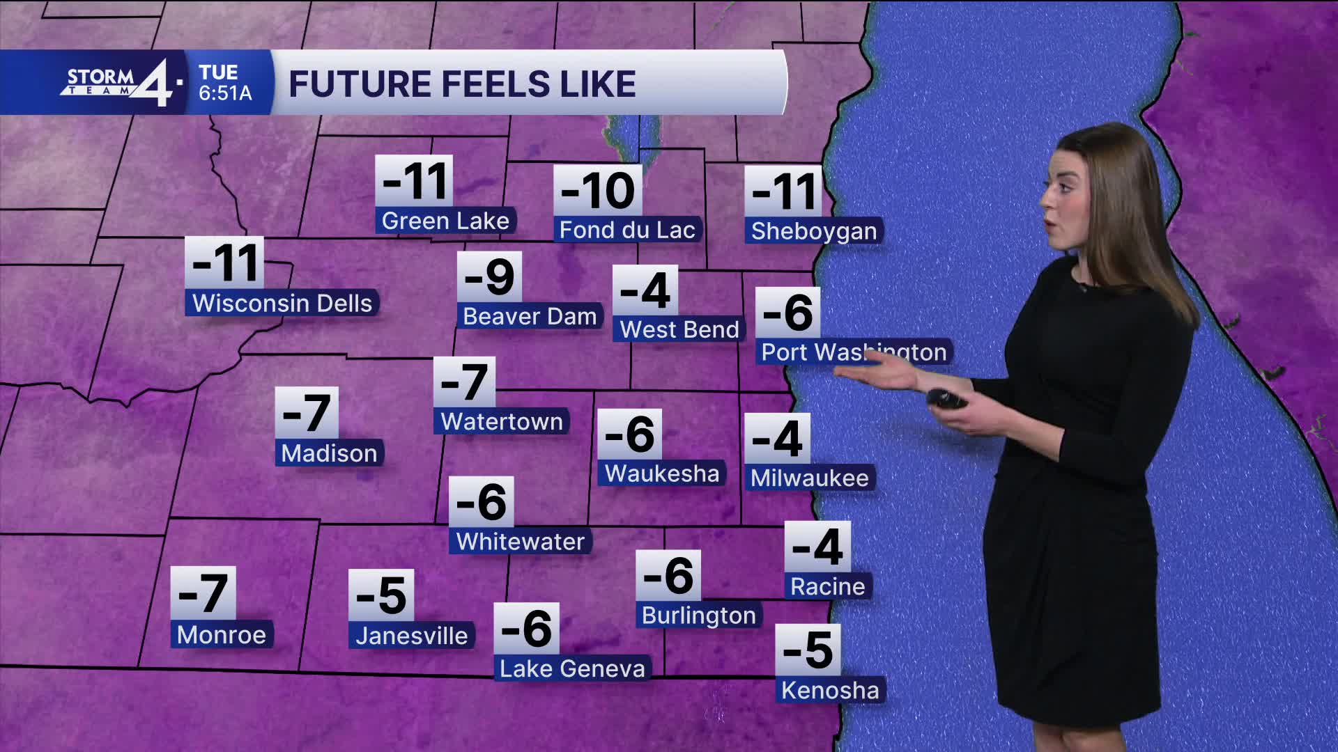 Temperatures have been below average for 10 days, including two days with highs in the single digits. Some lake effect snow showers brought a few inches to the Milwaukee area on Sunday.