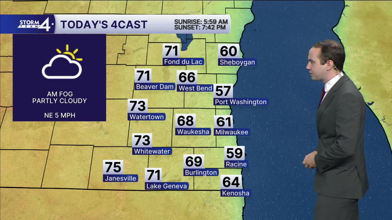Morning fog contributes to a little bit of a cool down today, but mostly for areas near the lake as 70s are still possible for those further inland. A stray shower could be possible later today and tonight, but otherwise we'll be dry through tomorrow.
