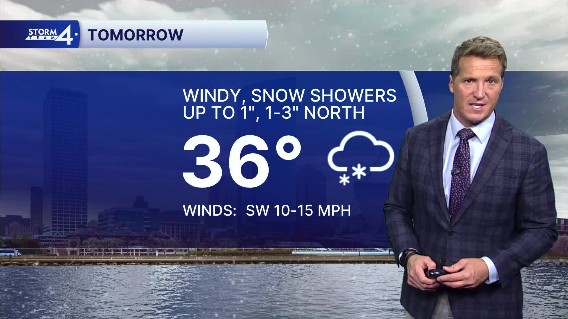 WEDNESDAY: Windy with Snow Showers. Up to 1" MKE, 1-3" North