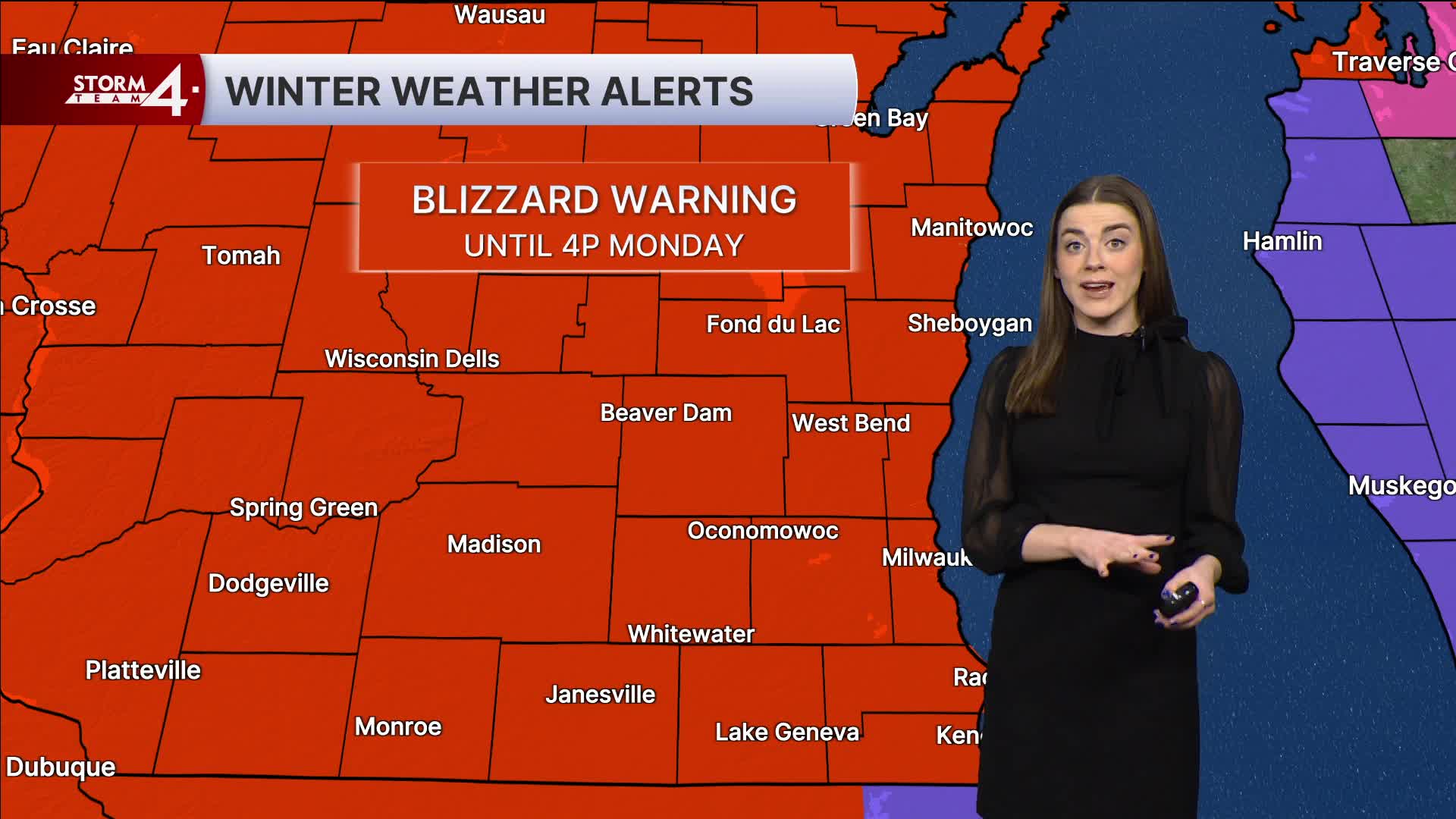 ****Blizzard Warning in effect until 4 p.m. Monday for Washington, Ozaukee, Sheboygan, Walworth, Fond du Lac, Dodge, Waukesha, Jefferson, Racine, Kenosha and Milwaukee counties.****