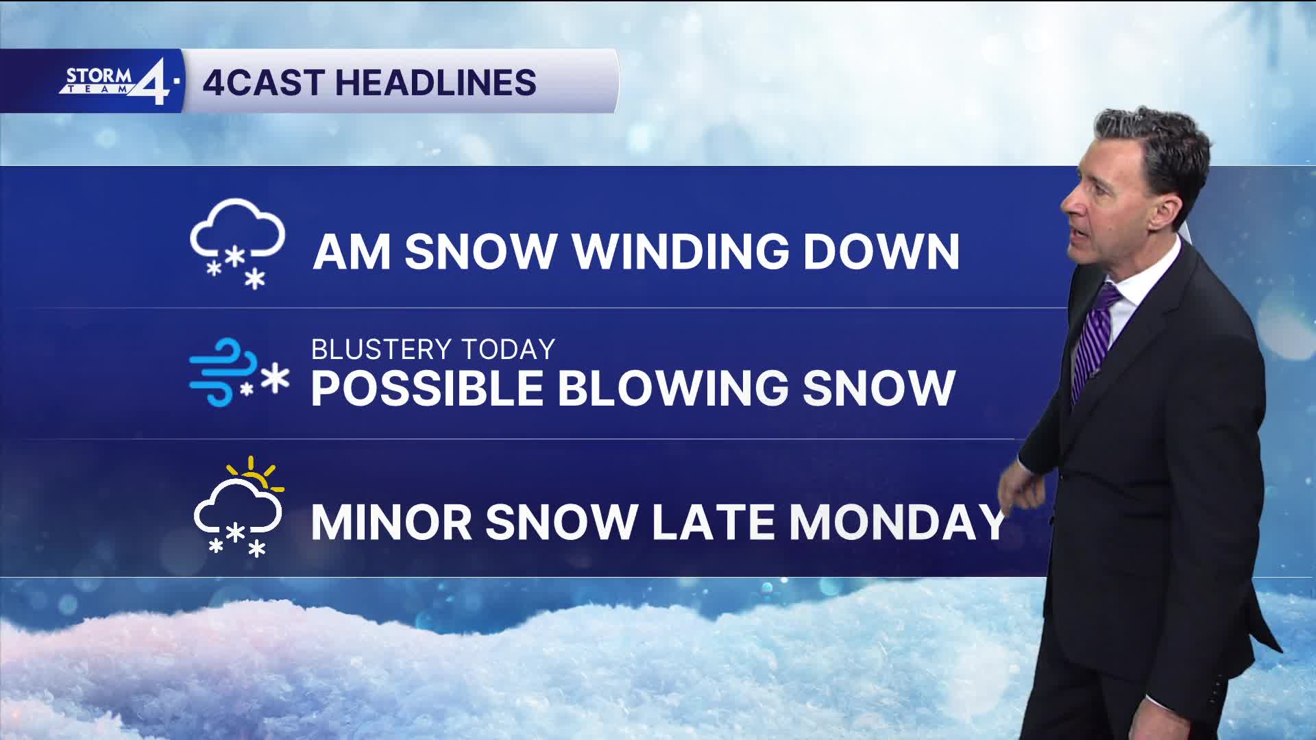 TODAY: Blustery, with any morning snow shower or flurry tapering off