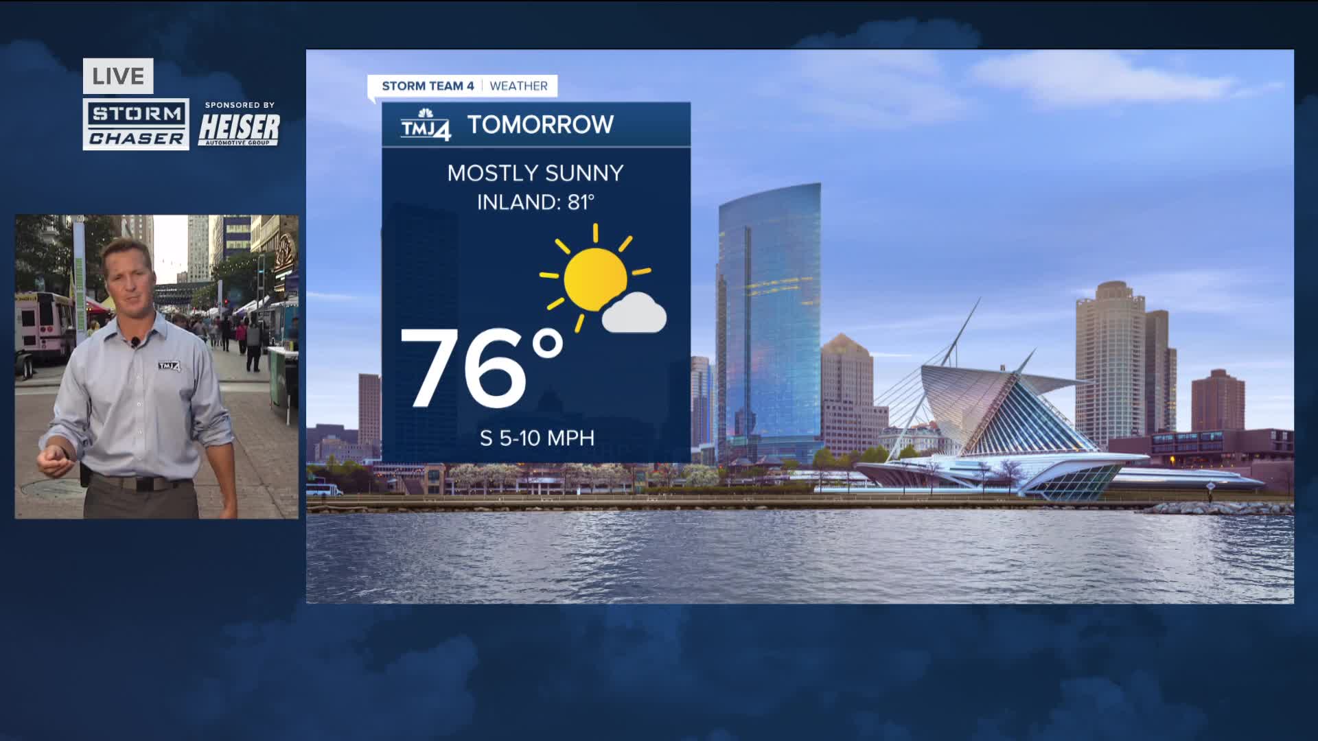 Despite a little more cloud cover at times, it's been another fantastic day. Temperatures this evening will be in the 60s, and lows tonight will fall to around 60 in Milwaukee and 50s inland.
