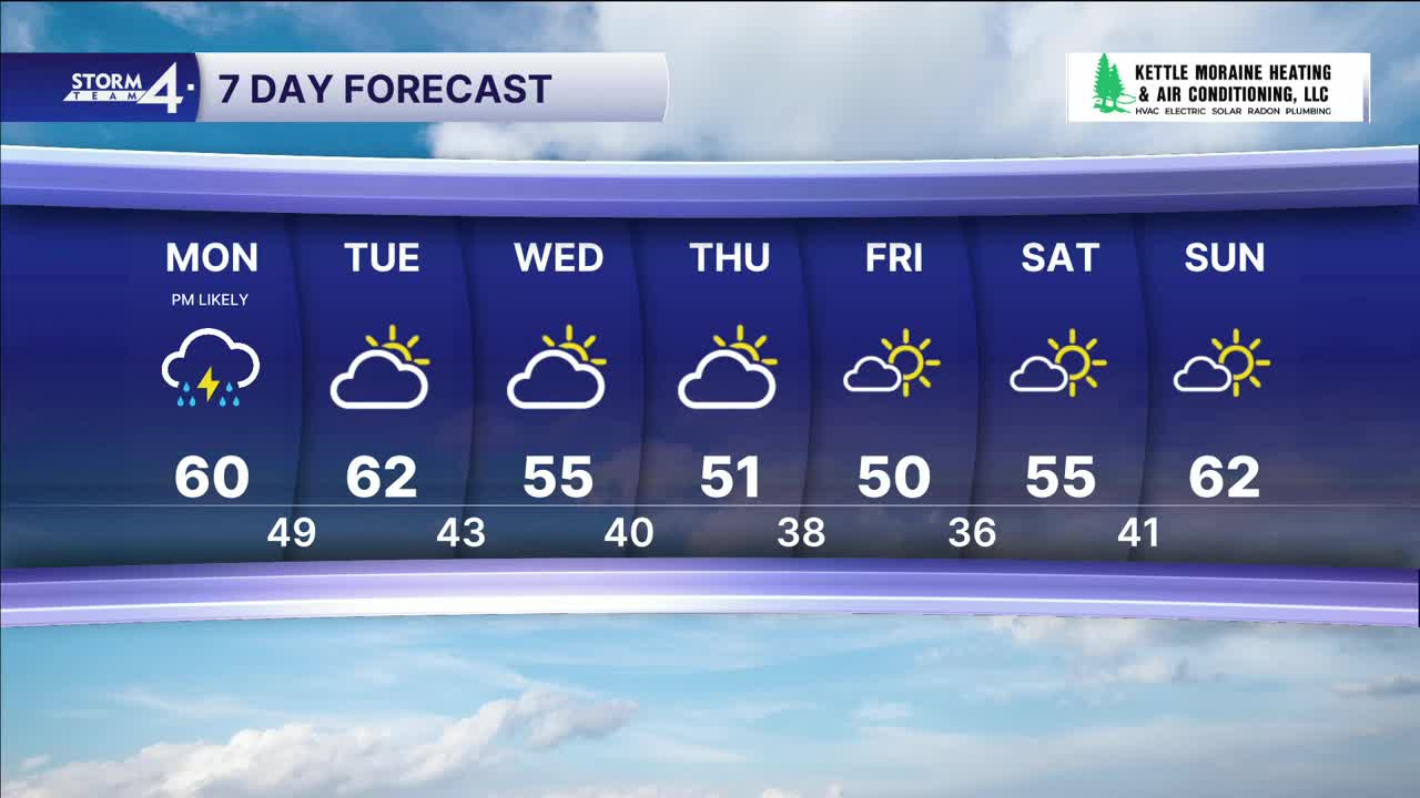 After a cool & quiet weekend, the weather pattern turns more active at the start of the work week. Scattered showers and a few storms overspread southern Wisconsin late this morning and into the afternoon. A few downpours are possible with this activity. Severe weather is not expected.