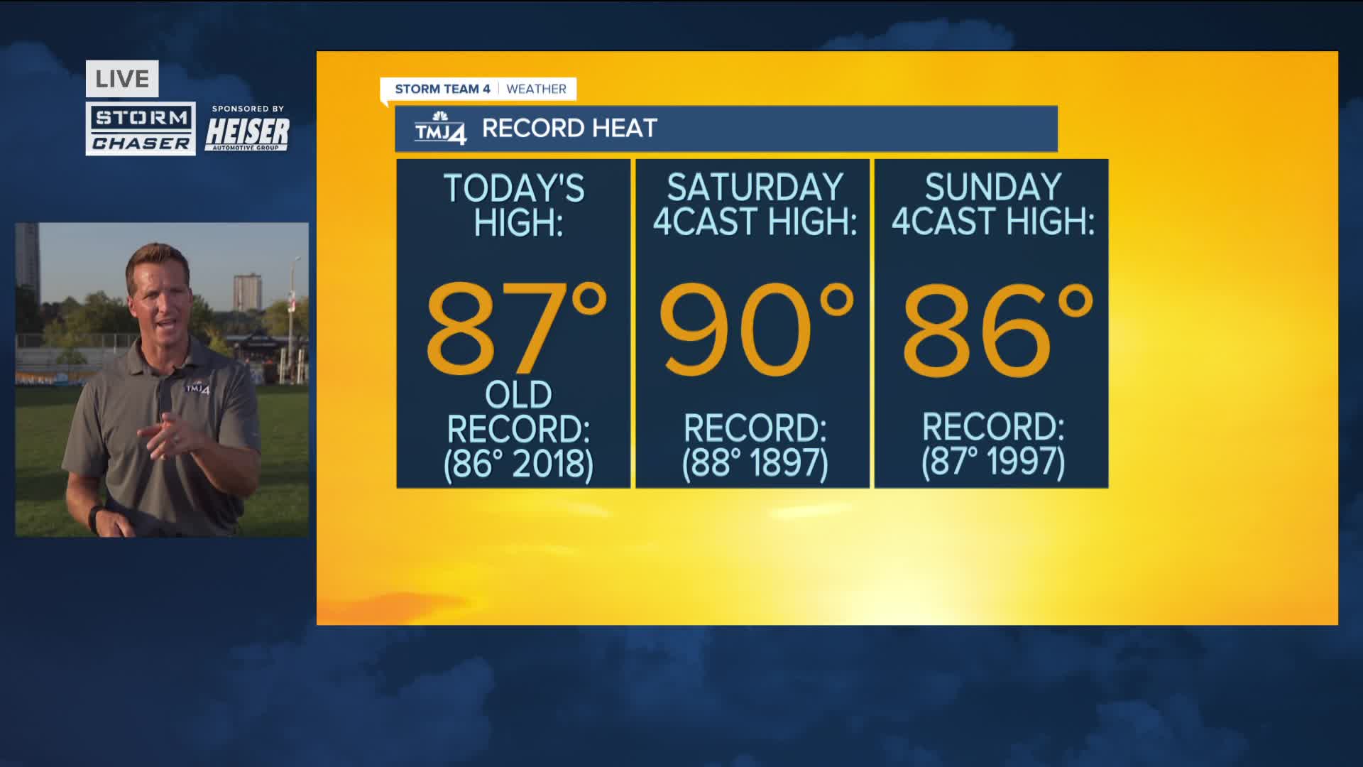 We broke today's record high temperature of 86 degrees in Milwaukee and tomorrow may be a few degrees warmer! It feels like the middle of summer, but thankfully the humidity isn't too bad. Once the sun sets, it should be a beautiful evening for high school football.