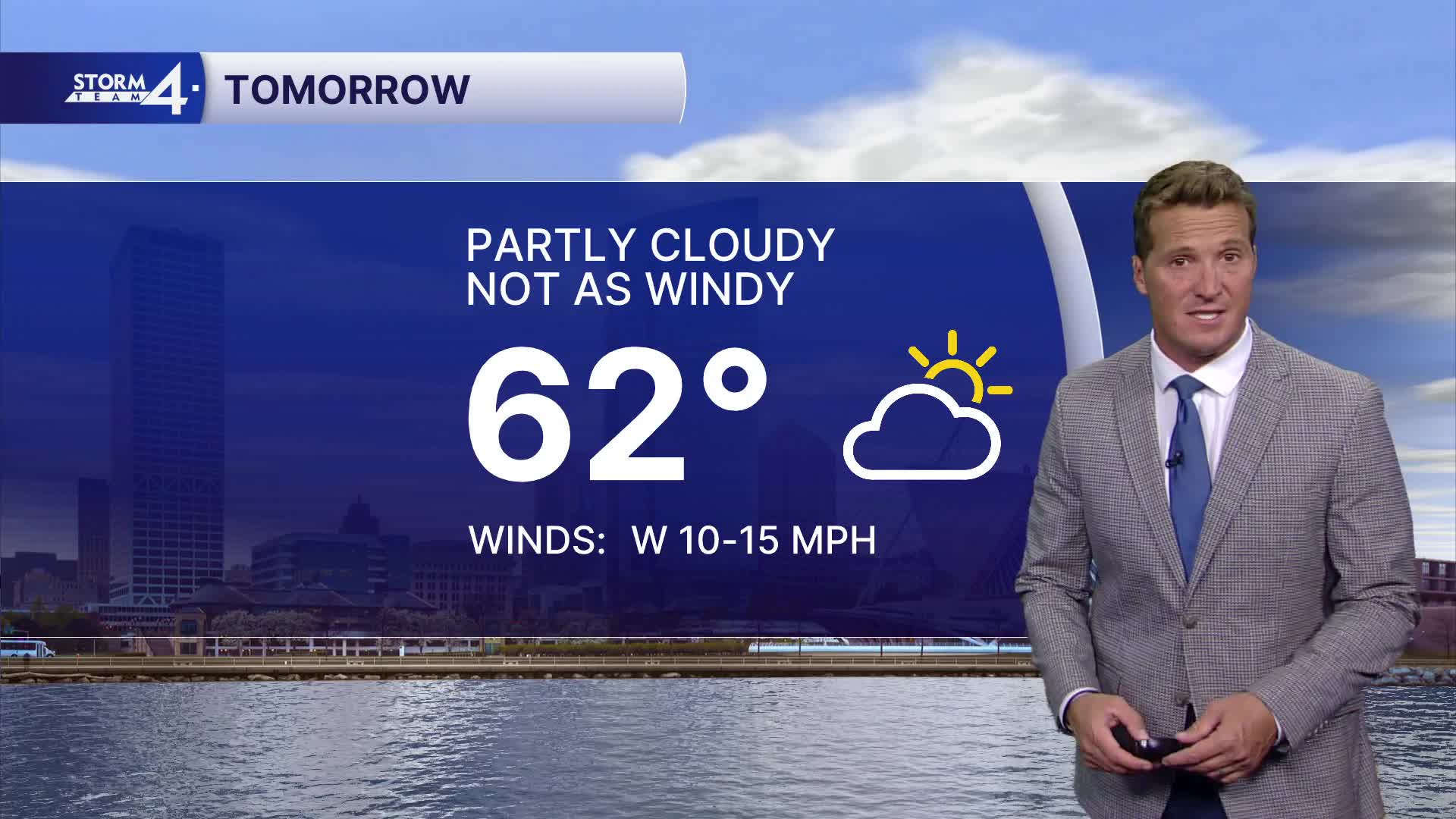 It's not going to be as windy tonight and into tomorrow. There will be a little bit more cloud cover tomorrow, but the temperature should still top out around 60 degrees.