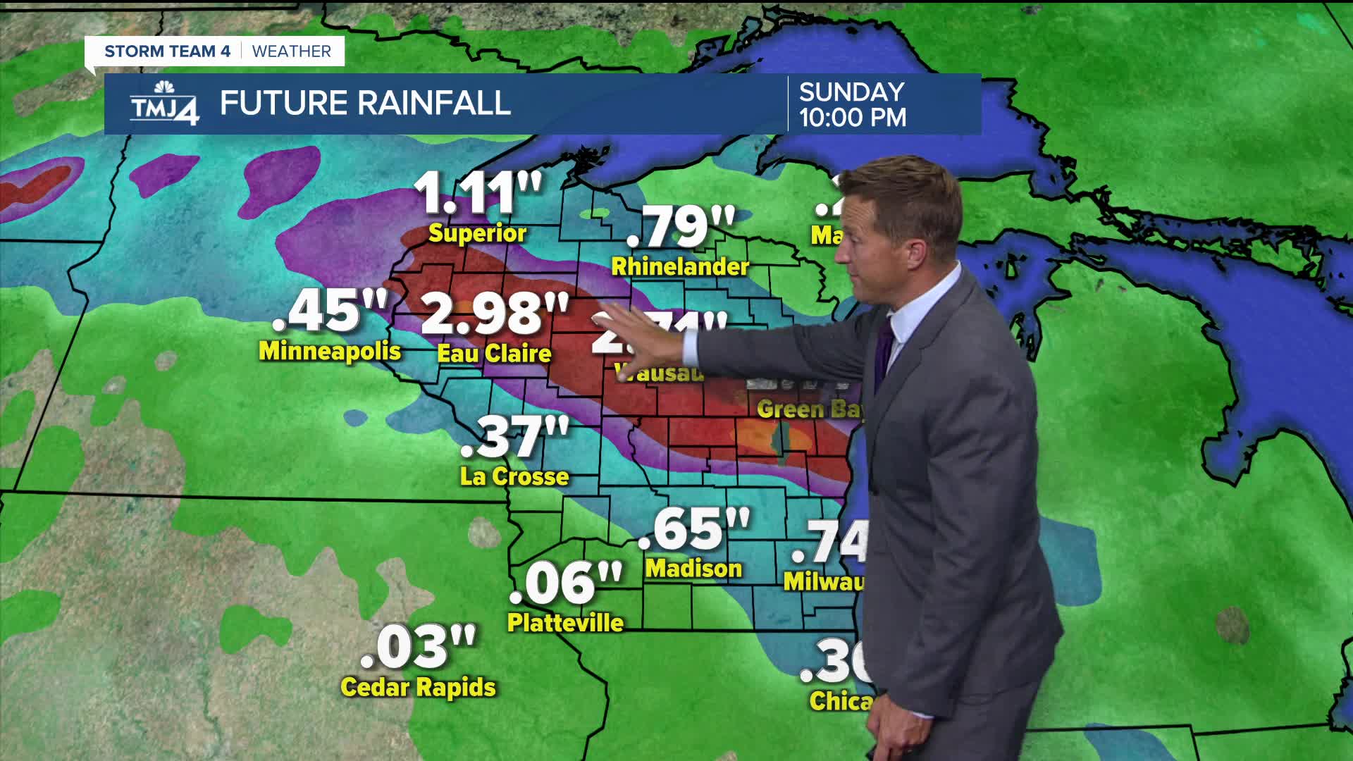 Temperatures heat up and humidity rises again into the weekend. This will lead to possible storms again Saturday and Sunday, but the main storm track is projected to our north.