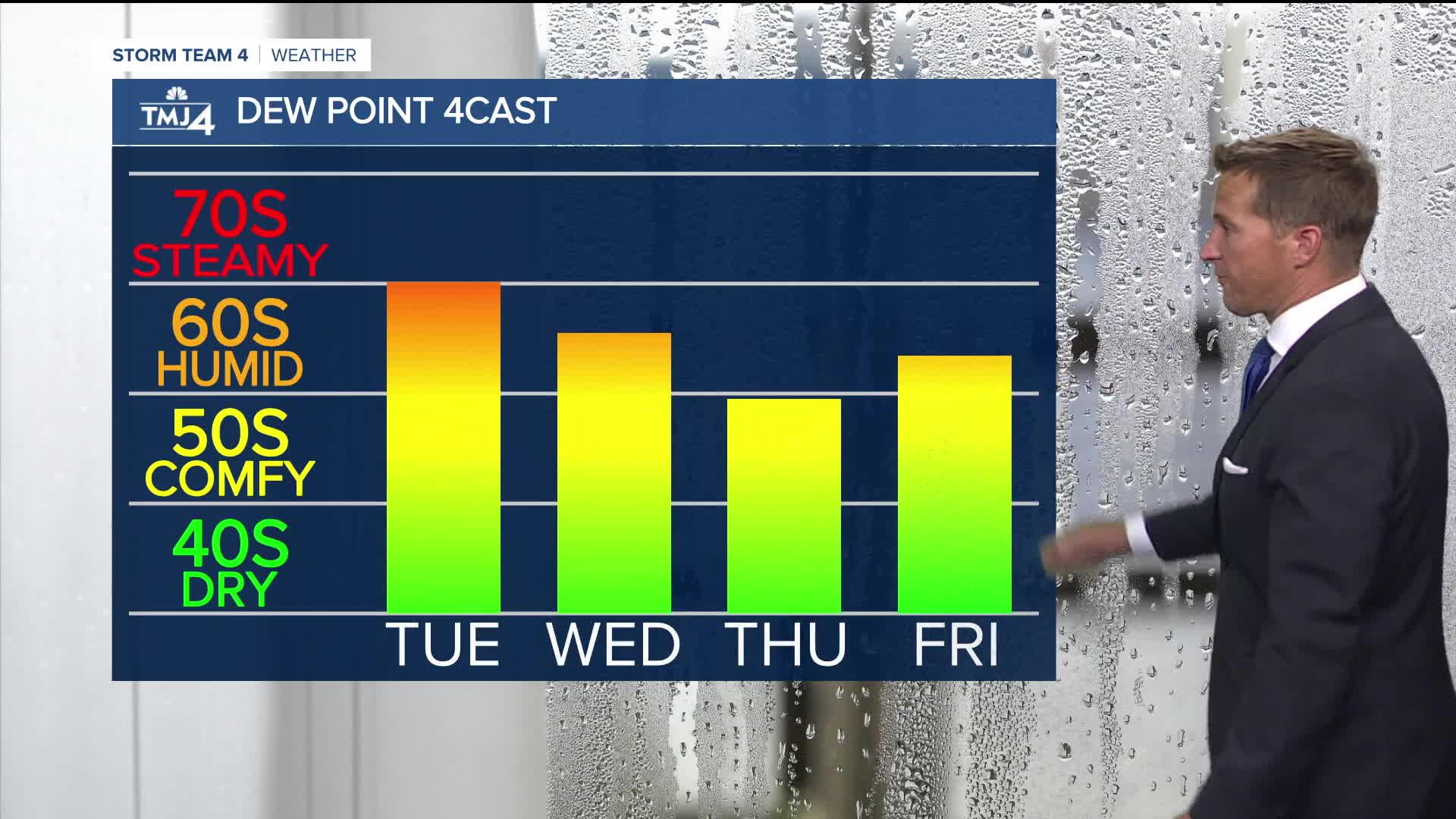 A cold front will bring relief from the humidity tomorrow night along with another small chance for showers.