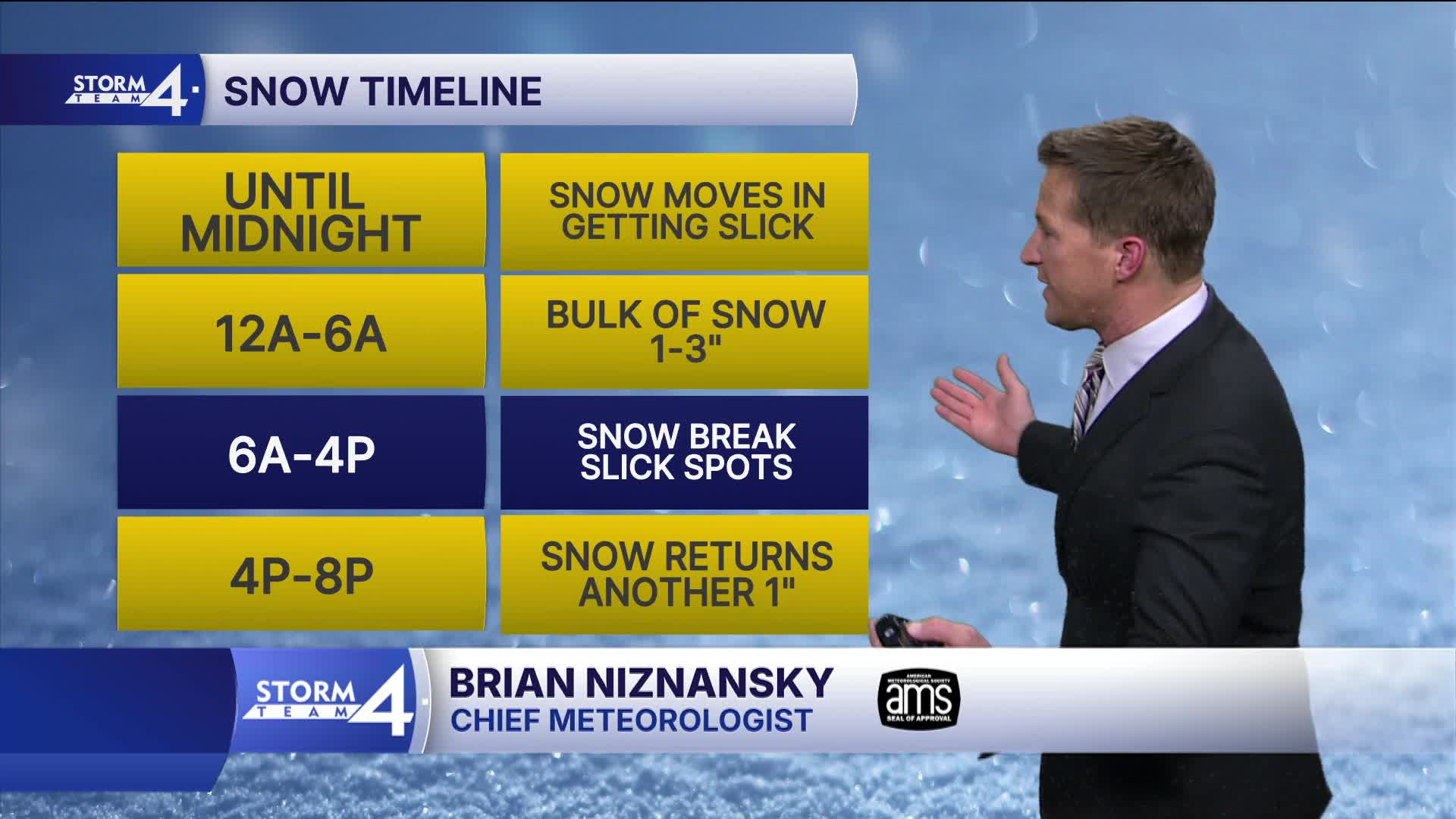 WEDNESDAY: Partly Cloudy. Ch. More Snow Late. 1" Additional