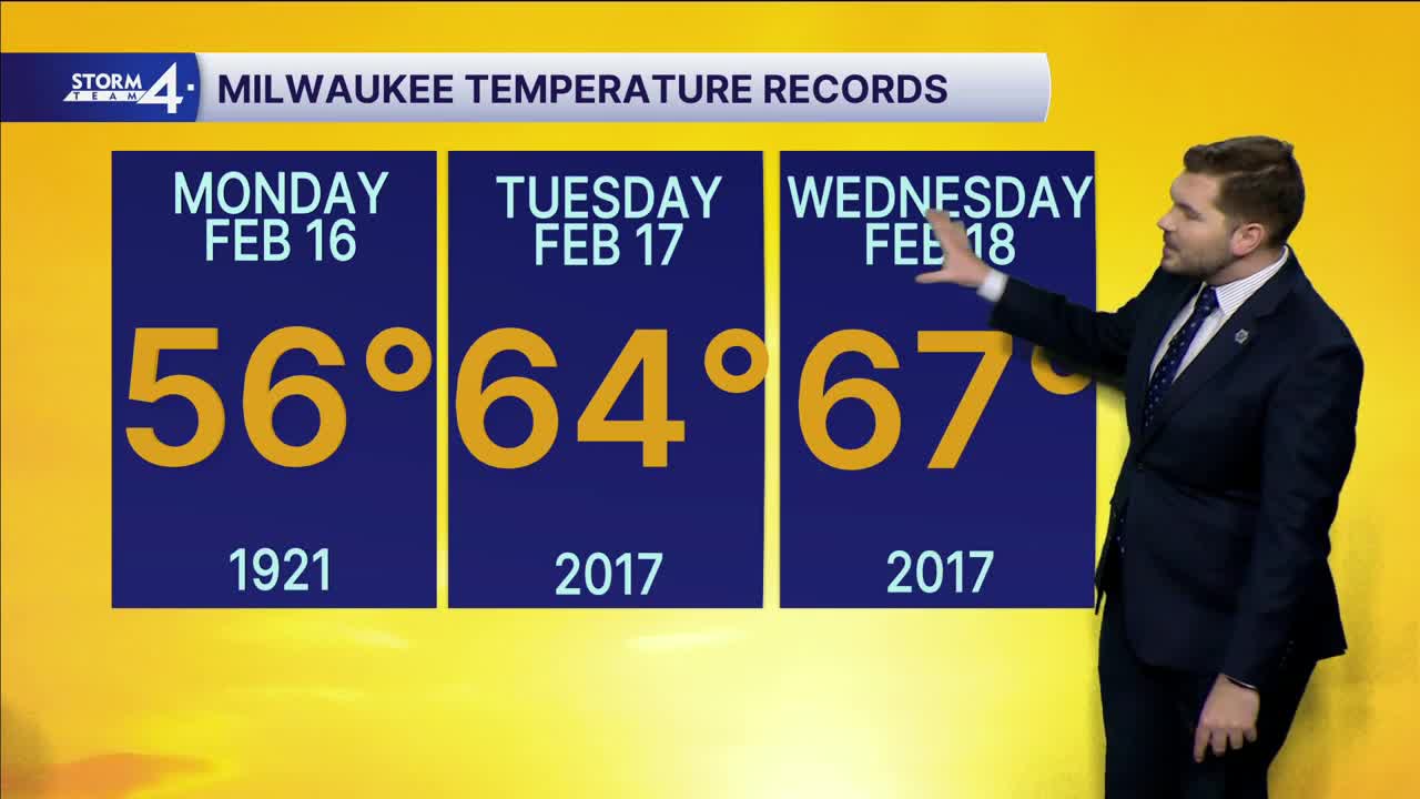 The weekend warmth carries over into Monday! Afternoon highs are expected to top out near 60 degrees. This would break the record high in Milwaukee of 56 degrees.