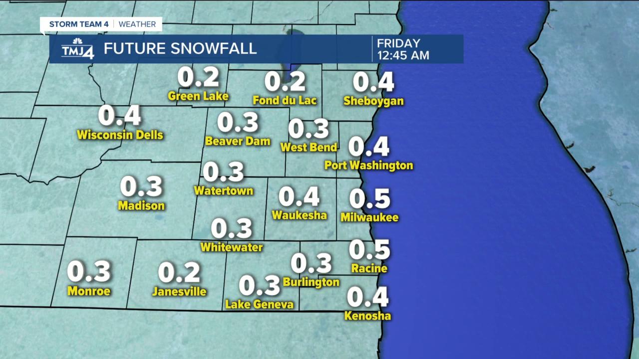 Thursday is mostly cloudy and windy with gusts to 30mph, temps in the teens and wind chills near 0 all day. Christmas morning is in the single digits with wind chills to -10 in Milwaukee to -20 inland. Friday afternoon has a few clouds with some flurries and a cold wind keeping highs near 20 and wind chills near 20. Saturday is nice with sun, a light breeze and temps near 30. We are watching a system that will bring snow showers to our area by Sunday afternoon into Monday....stay tuned.